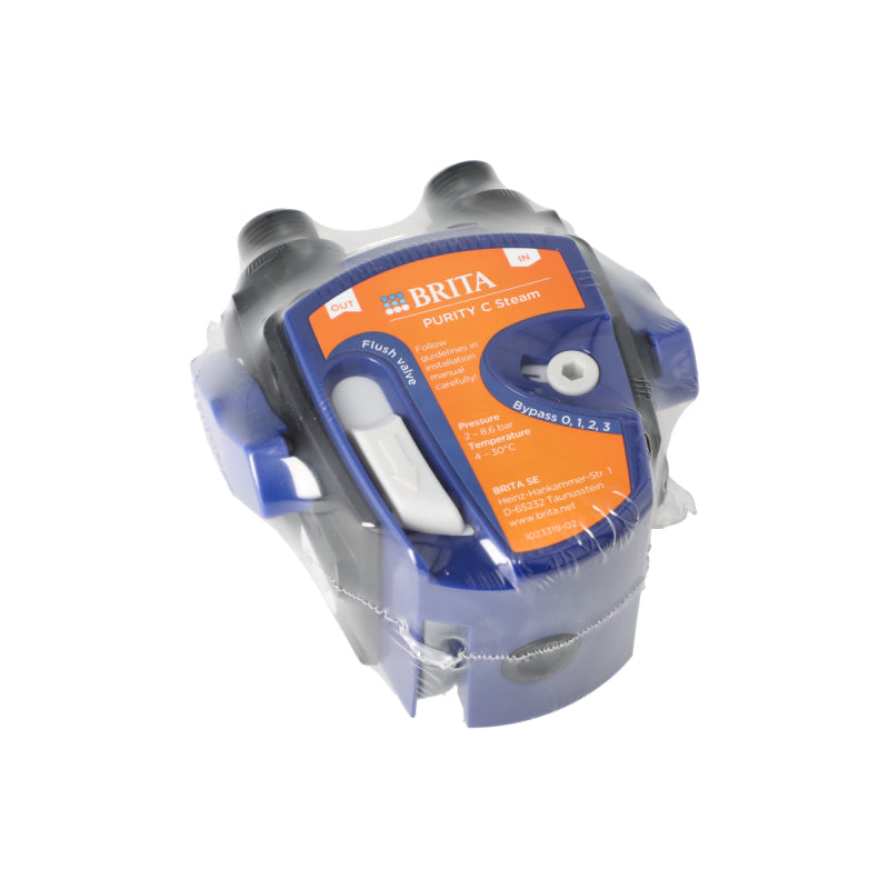 BRITA PN: 1023325 Purity C Steam filter cartridges ensure combi ovens and steamers use the best quality water for baking fish, meats and vegetables. The filter cartridges remove unwanted metal ions including lead and copper, and reduce substances such as chlorine and limescale. This brings out the best tastes in steamed food by allowing the true flavours and aromas of the ingredients to shine through, and also means the fine steam jets can remain open for longer. This may result in fewer frustrating machine breakdowns and lower service & repair costs. Product features • Brand: Brita • Range: Purity C Steam • Fits: Purity C Steam C500 & C1100 • Operating position: horizontal or vertical • Use with: combi steamers/ovens • Fully recyclable
