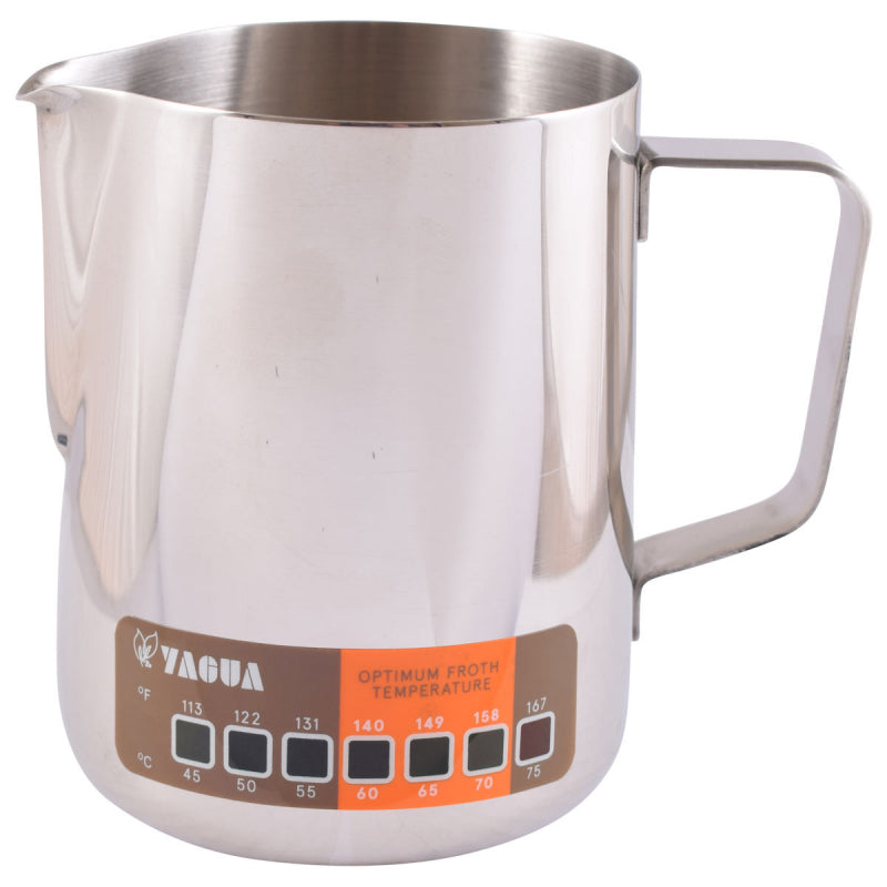 Dual dial label thermometer which fixes directly onto your frothing jug. Single colour liquid crystal indicators turn red instantly once temperature is reached. Features optimum froth zone indicator with extra crystal to indicate when the milk is too hot. Long lasting. Product features • Material: plastic composite with liquid crystal slots • Dimensions: L: 78 x H: 25mm • Temperature range: 45-75°C/113-167°F • Exclusive to Jaguar